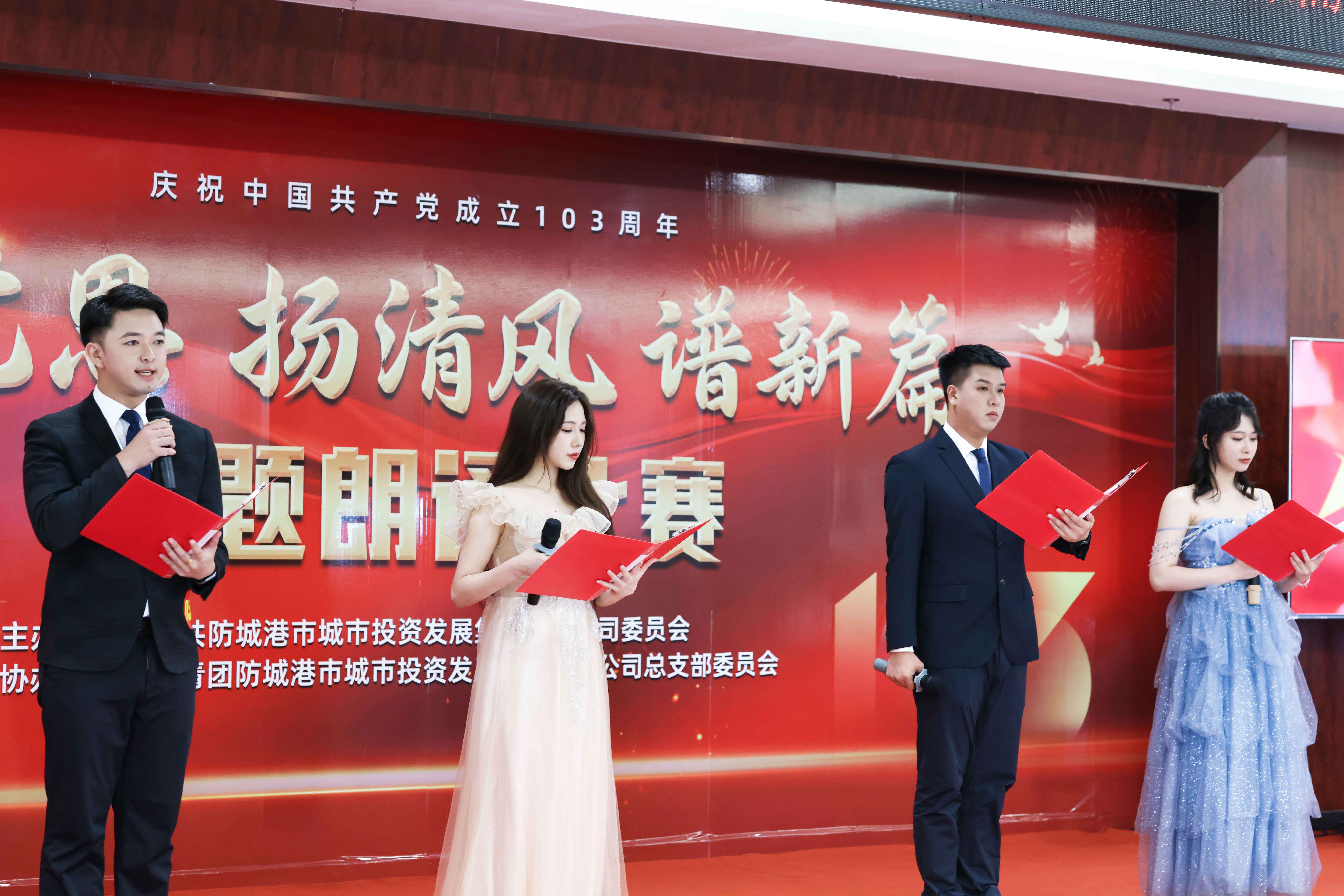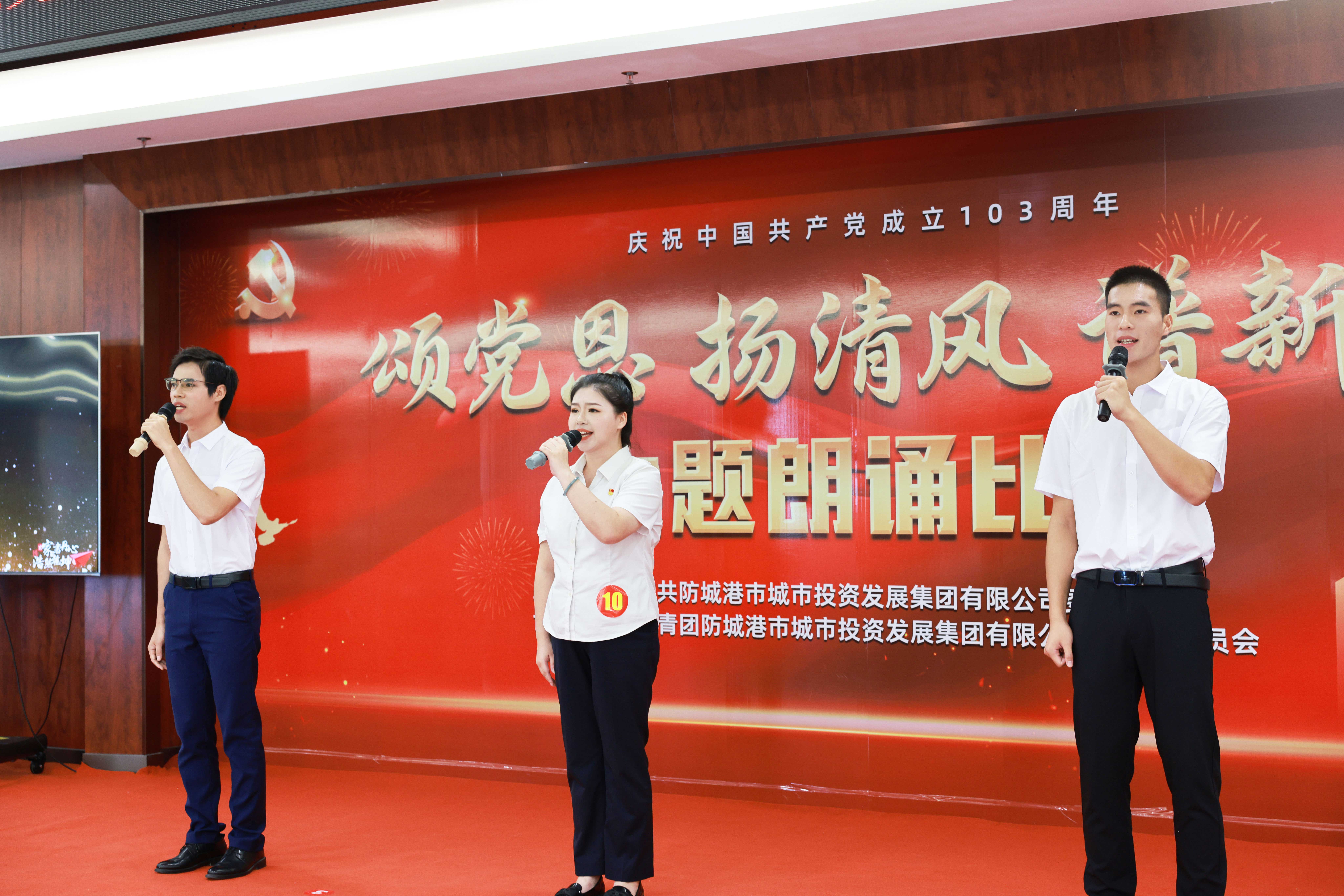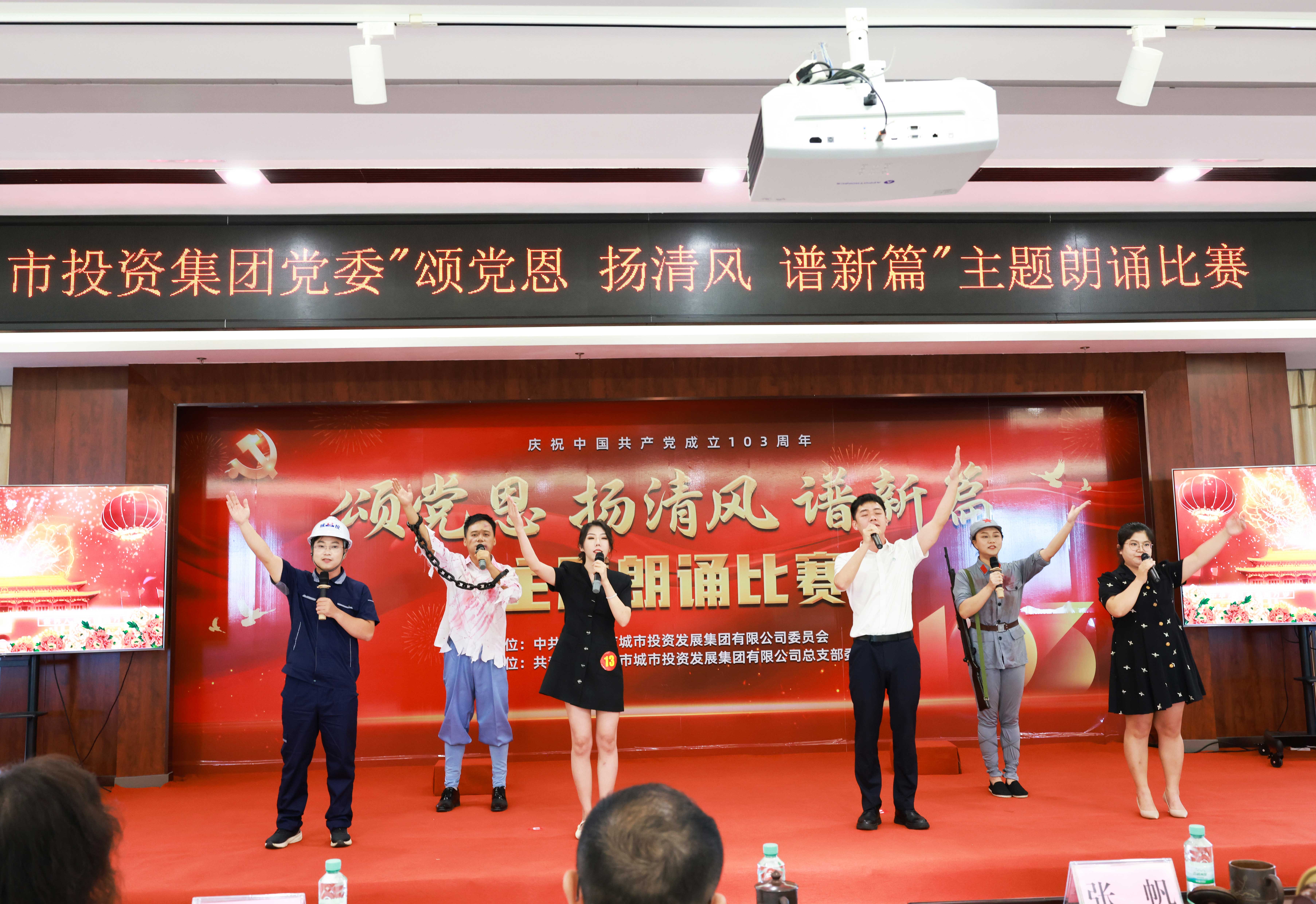 為慶祝中國共產(chǎn)黨成立103周年,回顧黨的光輝歷史,謳歌黨的豐功偉績,激發(fā)愛黨愛國熱情,弘揚清風(fēng)正氣,激勵廣大黨員干部職工忠誠干凈擔(dān)當(dāng),6月27日,市投資集團舉辦了“頌黨恩 揚清風(fēng) 譜新篇”主題朗誦比賽,來自各部室、子公司及集團團總支代表共15支隊伍、39名選手參賽,市國資委工會主席、市中華文化促進會朗誦專業(yè)委員會主任及集團公司在家班子領(lǐng)導(dǎo)出席并擔(dān)任評委。